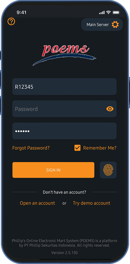 *Sesuai dengan daftar saham marginRio merupakan Nasabah POEMS level Legend yang memiliki dana sebesar Rp50.000.000,- dan ingin melakukan pembelian saham KLMN dengan harga Rp5.000,-, PQRS dengan harga Rp8.000,-, dan UVWX dengan harga Rp4.000,-.